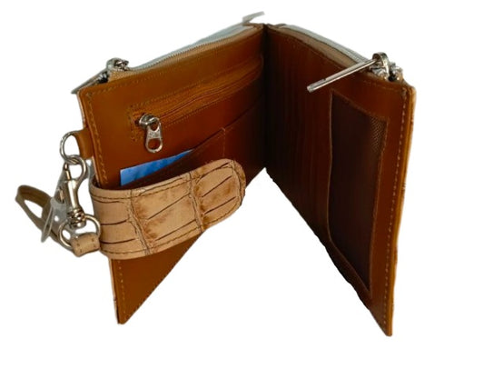 Tarjetero Beige Multifuncional con Cierre y Compartimentos Organizados