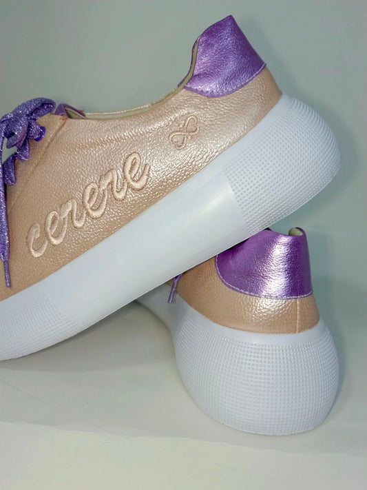 Zapatillas Deportivas Elegantes para Mujer en Oro Rosa con Detalles Lila - Modelo 4824