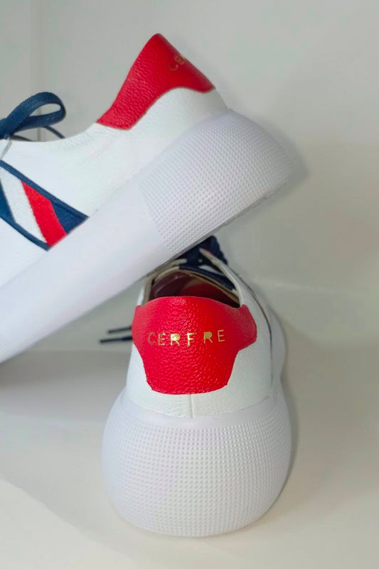 Zapatillas Deportivas Blancas para Dama con Detalles en Rojo y Azul Marino - Modelo 4827