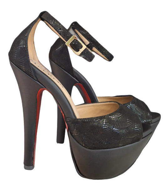 Sandalia de Tacón Alto Negro con Plataforma y Diseño Moderno L-90