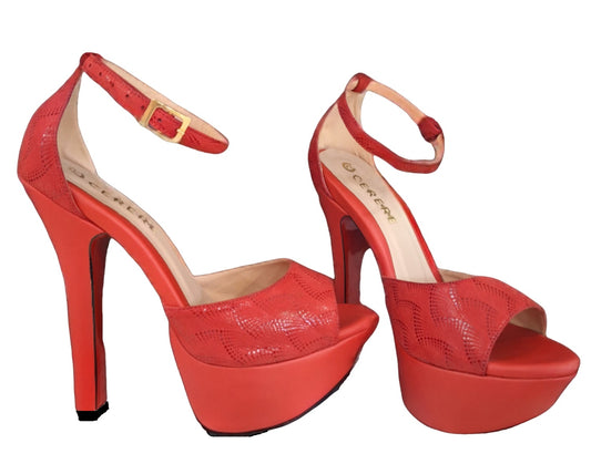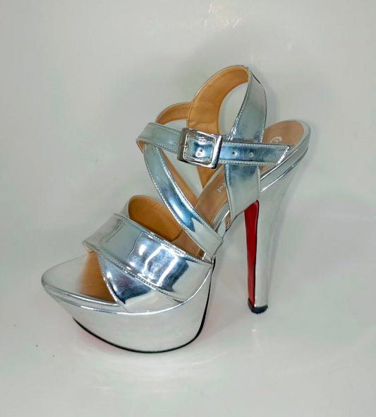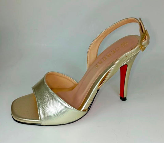 Sandalia de Tacón Alto Champagne con Detalle Rojo Modelo L-101 - Elegancia y Feminidad para Ocasiones Especiales
