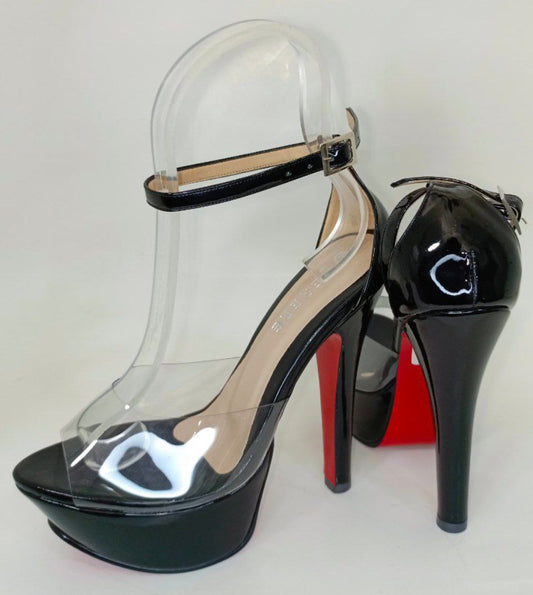 Sandalia de Tacón Alto Negra con Plataforma Transparente y Diseño Moderno E-769A