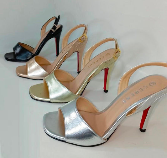 Sandalia de Tacón Alto Plateada con Detalle Rojo para Mujer - Modelo L-101 Elegante y Versátil