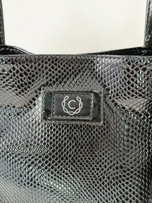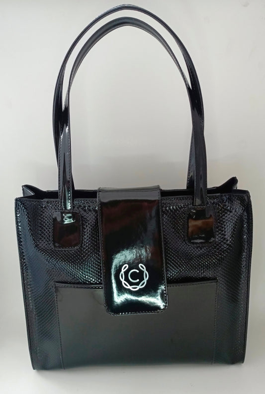 Cartera de Piel Coco Patente Negro Modelo Nora22 - Ideal para Uso Diario y Salidas Casual
