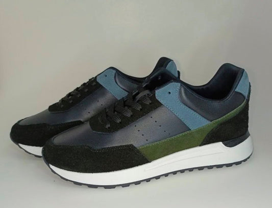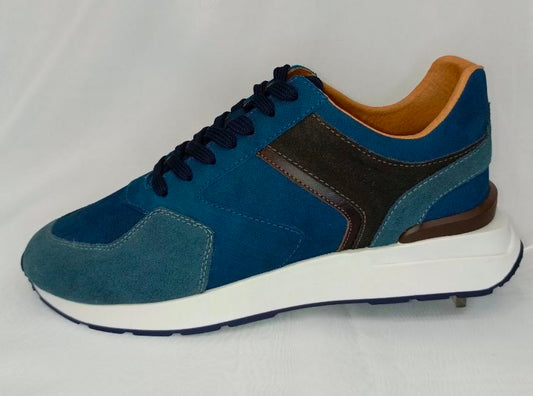Zapatillas Elegantes para Hombre en Ante Azul Marino y Marrón - Modelo 1026